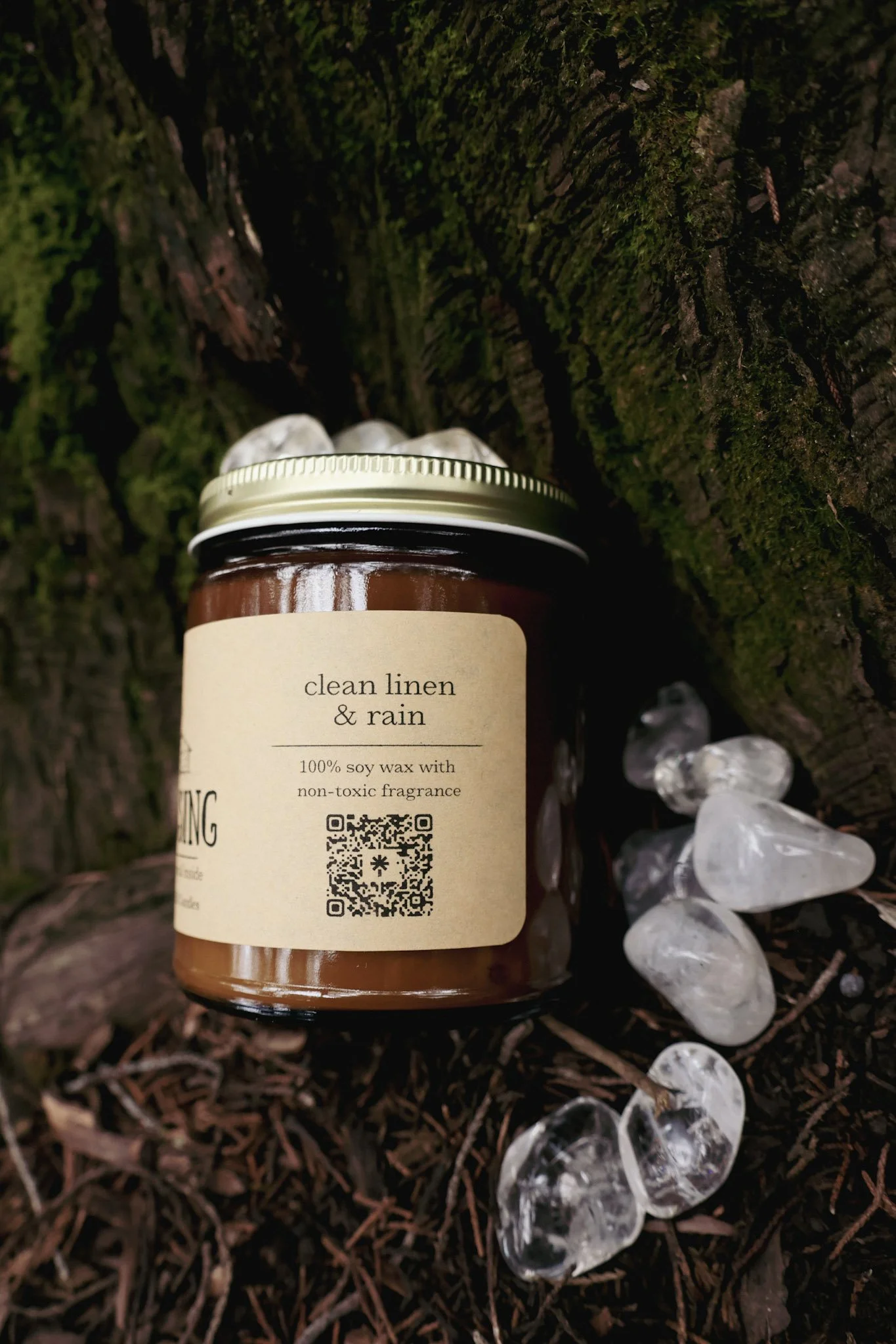 At the bottom of every candle is an amethyst crystal that you can add to your crystal collection by safely removing it after the flame is extinguished - simply rinse with hot water and wipe clean!