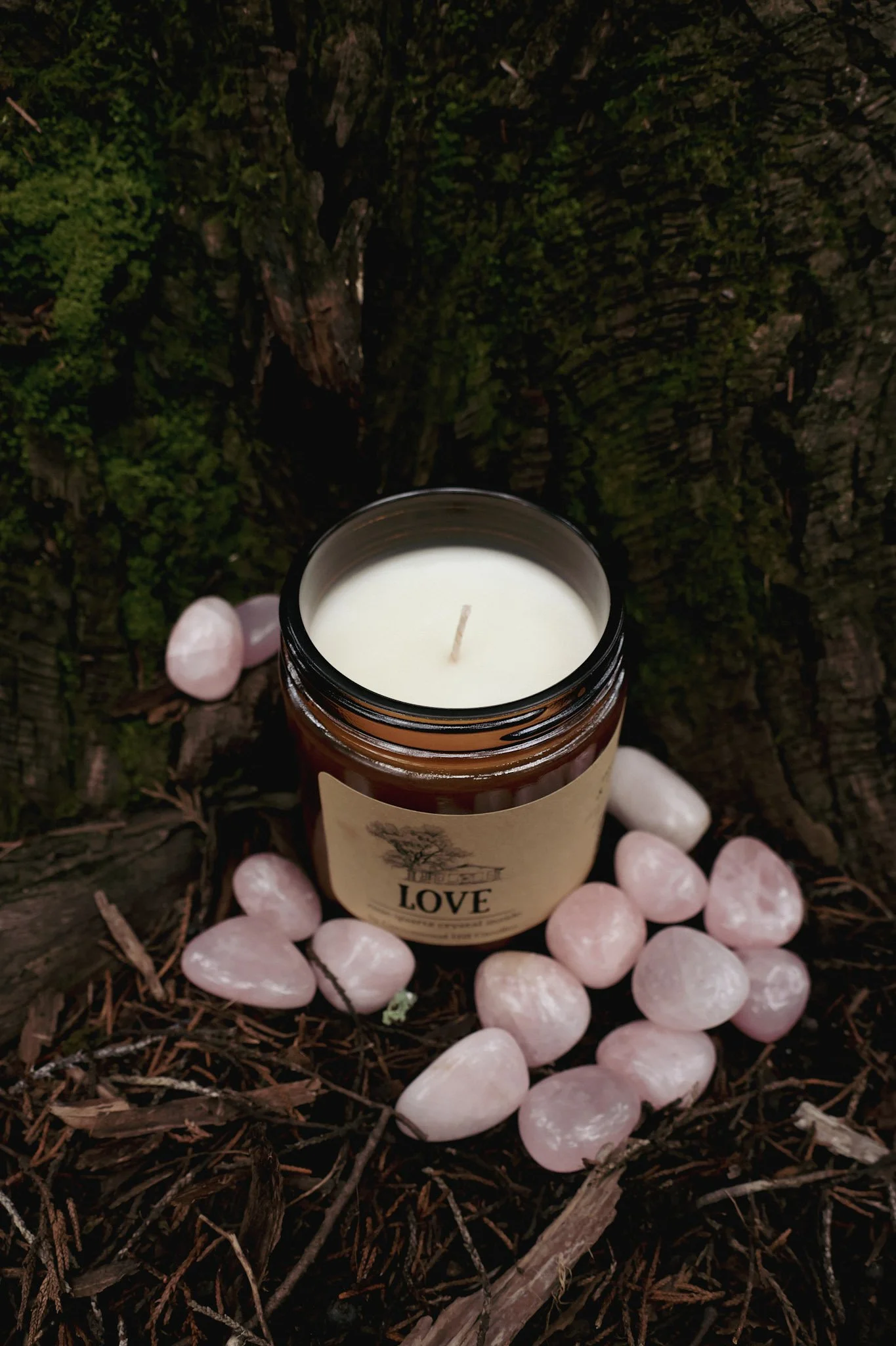 At the bottom of every candle is an green aventurine crystal that you can add to your crystal collection by safely removing it after the flame is extinguished - simply rinse with hot water and wipe clean!